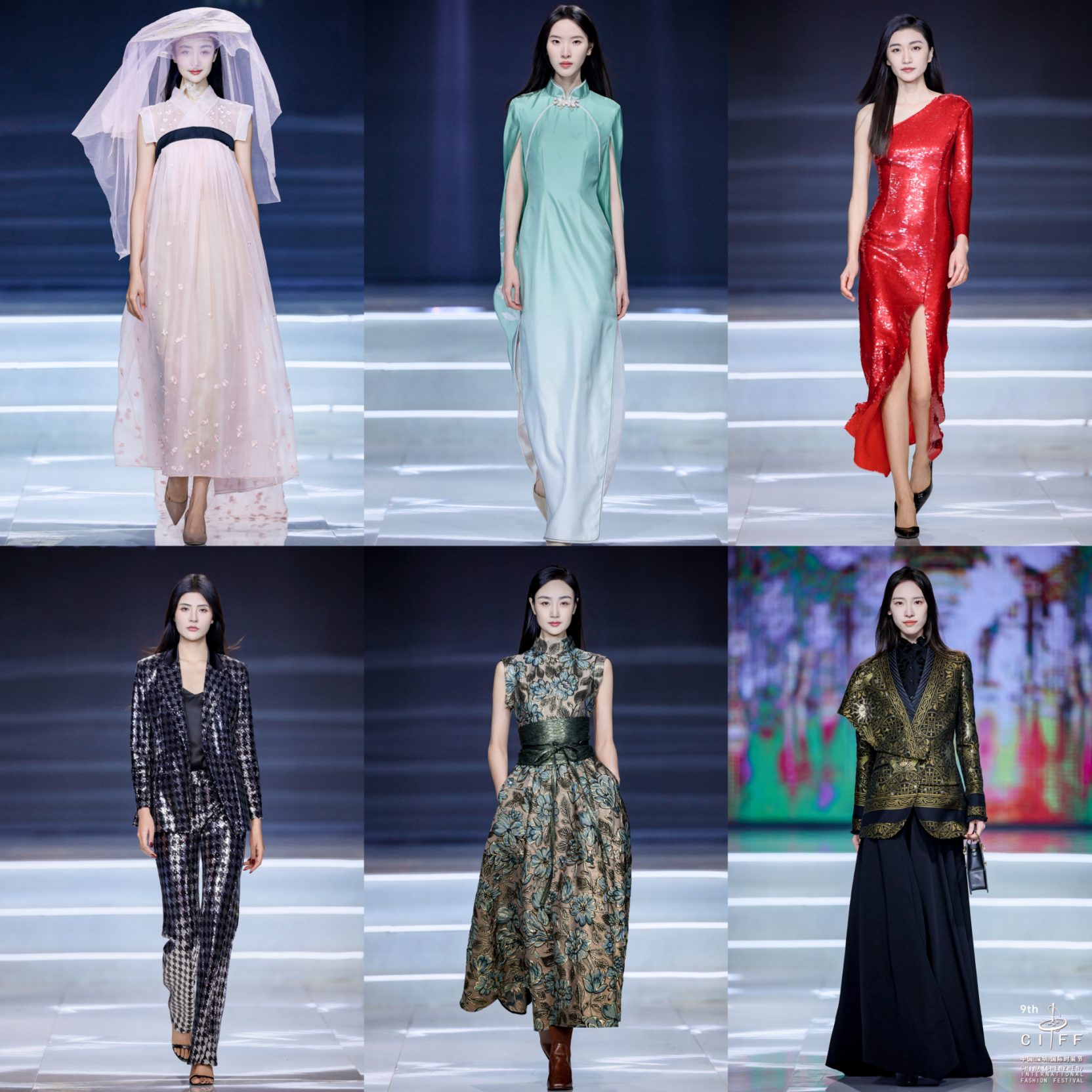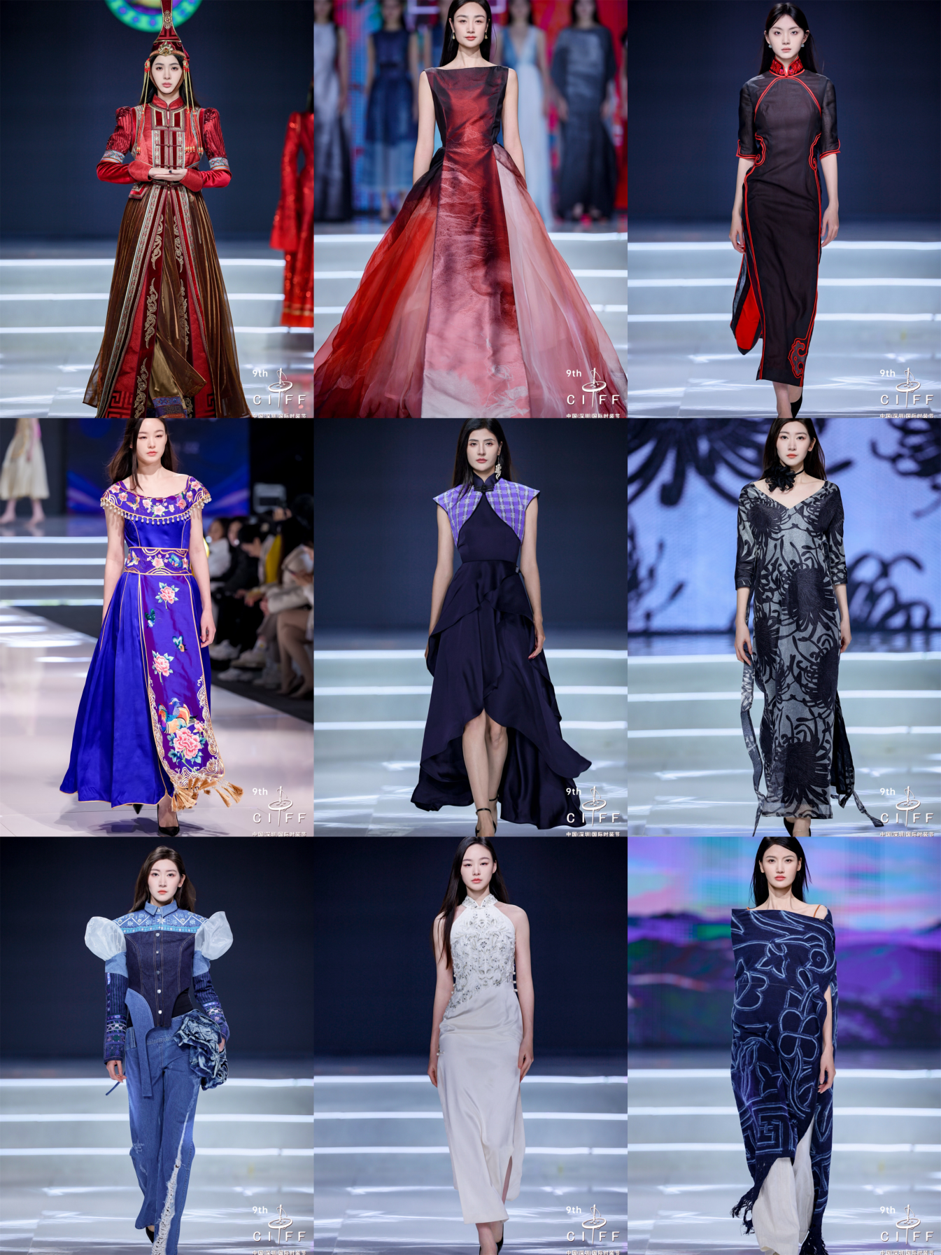 国风大秀是本次发布的另一大亮点。清华大学美术学院染织服装系教授、博士生导师李薇,内蒙古自治区民族服饰协会主席、内蒙古服饰非遗传承人朝乐梦,KEILAM高级定制创始人、首席设计师童晓妍,中国十佳服装设计师、汀南服饰设计中心创始人兼设计总监屈汀南,广东十佳服装设计师唐志茹,广东十佳服装设计师、MOHUA墨话品牌创始人墨话/候晓琳,广东省服装设计师协会副会长、广东技术师范大学美术学院教授蔡蕾,广东省服装设计师协会副会长、广东十佳服装设计师成晓琴,清华大学国际研究生院教授陈燕琳,凭借笃定的匠心和高妙的才思,用心打磨每件作品,对非遗中的传统广绣、香云纱、宋锦等传统元素进行了二次创作,将承载着民族记忆的文化符号与现代裁剪和廓形相结合,将传统时尚文化进行创新性转化,夯实文化自信的底气,彰显新时代的大国气度。